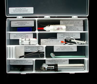 | Used with the Rodent WorkStand, each pack is designed to neatly hold all the tools and supplies needed to perform quick, efficient and minimally traumatic orotracheal intubation of small rodents. Each compartment is labeled for contents, reordering information and component instructions. Packs include; a specially designed and molded autoclavable intubation speculum, a lidocaine applicator, and endotracheal tube guide wire, an incisor loop and a brief tutorial video. In addition, the Rat Pack contains scissors, umbilical tape, and a mirror for the verification of tracheal intubation.