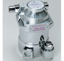 Precision vaporizer manufactured to deliver specific anesthetic agent by percentage concentration. Automatic flowrate and temperature compensation. Large, easy-to-read dial and sight glass for at-a-glance liquid level monitoring. Integrated safety lock to prevent unintentional engagement. Funnel Fill and Pin-Index Fill models available.