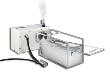 The Scavenging cube creates low-pressure/high-flow exhaust for chambers such as the VetEquip Vented Chamber, and low-flow/high-pressure vacuum for circuits like the CX-series nosecones or similar. Vent to a VaporGuard filter or in-house evacuation for easy removal of all waste gas.